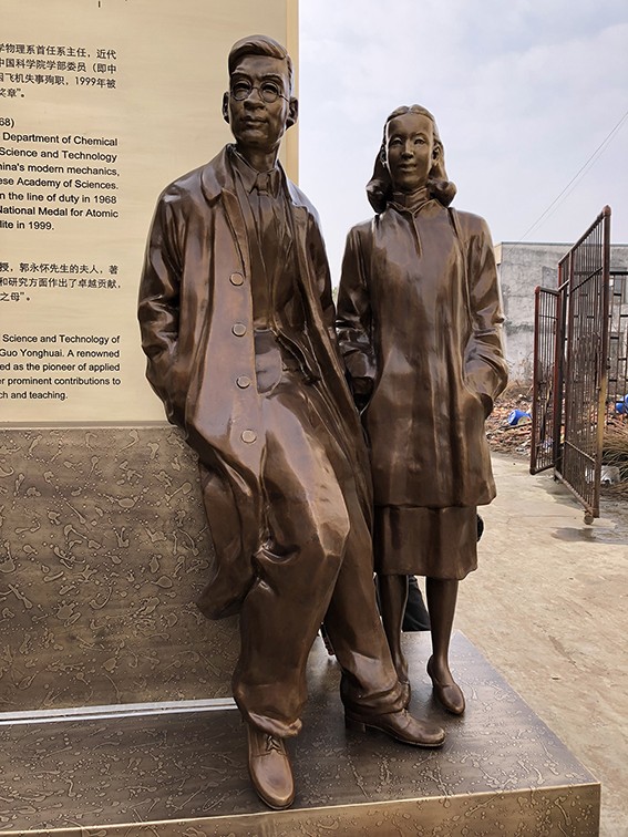 為"兩彈"功勛塑像,為"兩彈"精神立碑。銅官府文化創(chuàng)意股份公司承制的"永懷初心"郭永懷、李佩夫婦雕塑在中國科技大學校園落成!